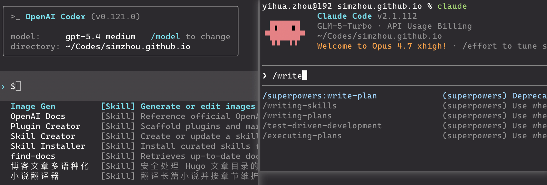 而模型例如 GPT-5.4, Opus4.6, GLM-5.1, MINIMAX-M2.7, … 之间的差异,我这边就不做评价了,大家可以在使用的过程中自行感受,也可以和周围或者网上的人交流一下,大家应该都会有一些使用心得。