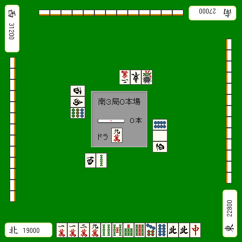 目标是利用手里浮着的宝牌,做出“全带幺九三色北宝牌 1”或“全带幺九北宝牌 2”的满贯。